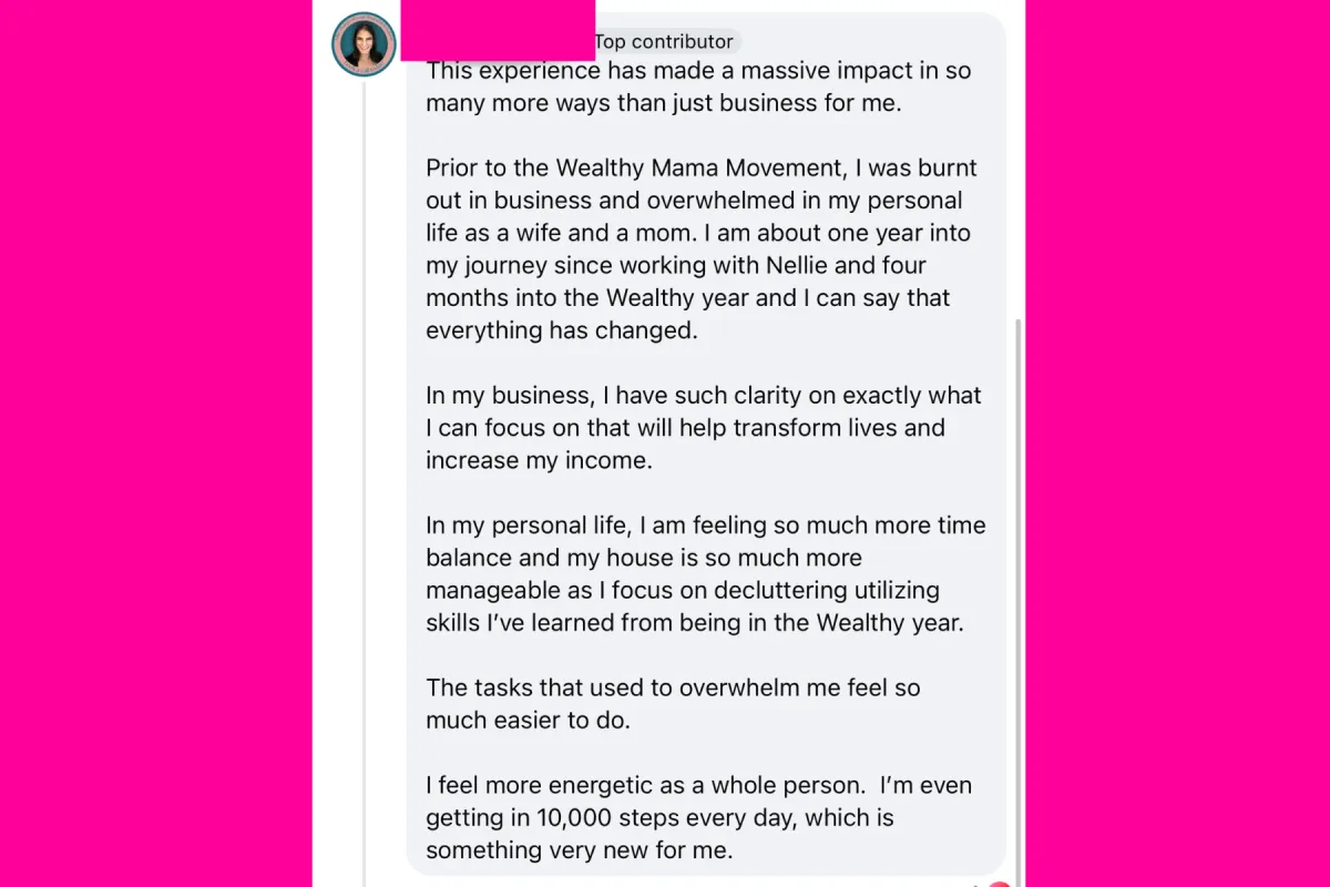 Your Wealthy Year Mentorship is the launching pad to funding your dream life. This is THE PLACE TO BE for moms with big money goals that are finally ready to create the freedom-filled life they dream of. With daily Wealth Activation trainings from Nellie every weekday, you’ll get practical business strategies, mindset shifts, and energetic boosts to keep you moving forward—without the overwhelm. This mentorship isn’t about hustling harder—it’s about aligning with your wealthiest self, taking powerful action, and creating the dream life and legacy you’ve been craving.